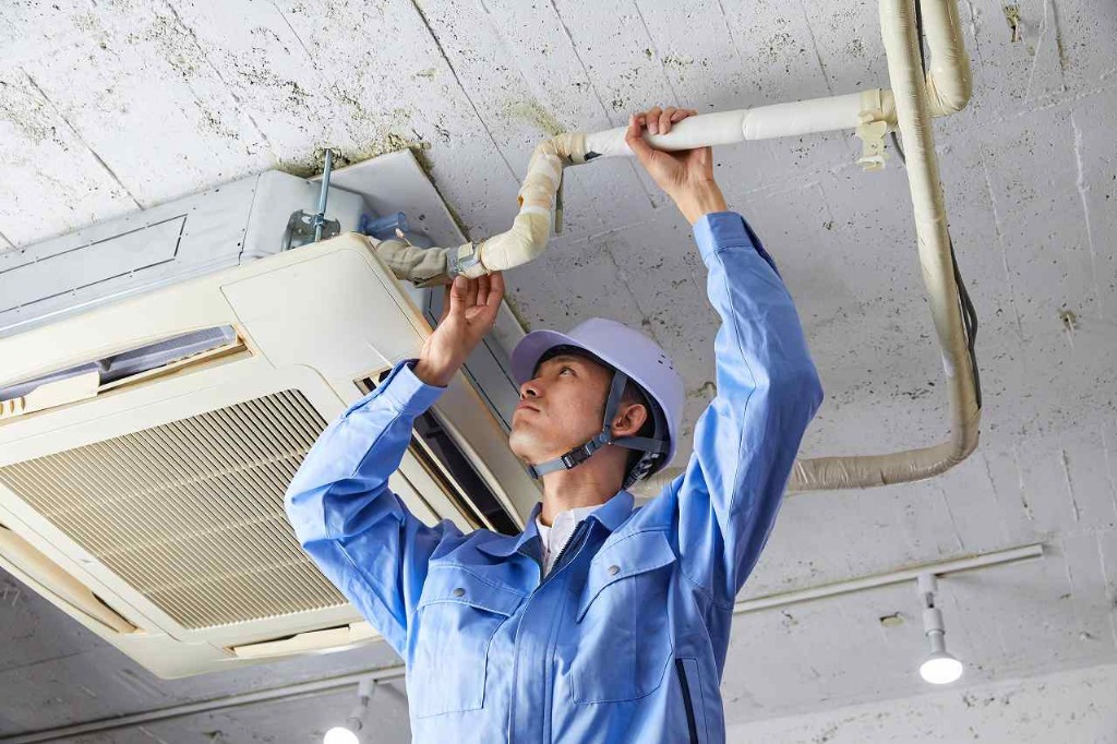 エアコンなどの空調を設置する工事です。ただ設置するだけでなく、入口や窓、換気口の位置やテナントの構造を理解したうえで設置をしなければなりません。大工さんやほかの職人さんとしっかりコミュニケーションを取り、最適な工事を行います。また、現場にはさまざまな業種の職人さんが集まります。作業をスムーズに進め、ほかの業種の方の手を止めたり作業の妨げにならないよう、ほかのスタッフとの連携を大切にしています。